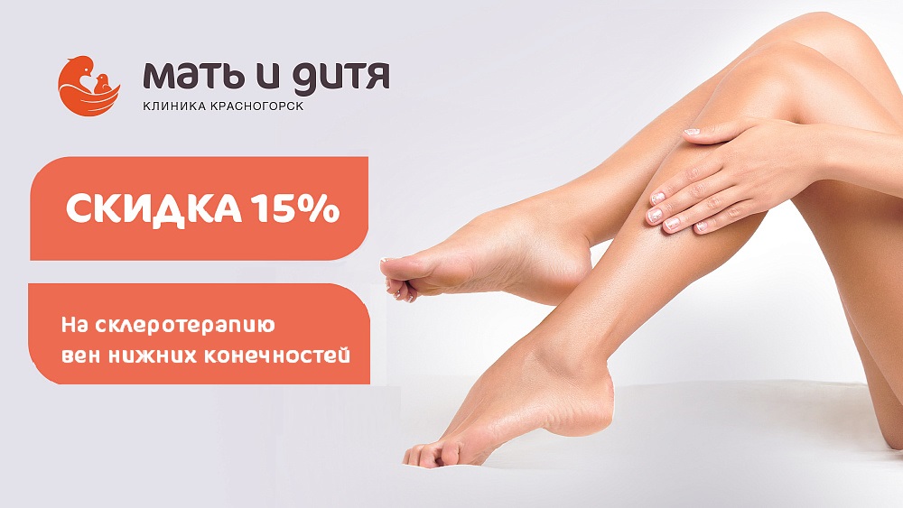Предлагаем вам воспользоваться специальным предложением — 15%-й скидкой на склеротерапию вен нижних конечностей.