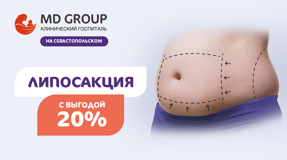 В отделении пластической хирургии КГ MD GROUP на Севастопольском сейчас действует специальное предложение – скидка 20% на липосакцию!