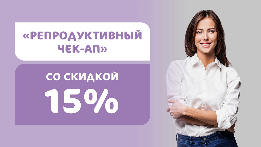 Предлагаем вам воспользоваться специальным предложением — 15% скидкой на «Репродуктивный чек-ап»