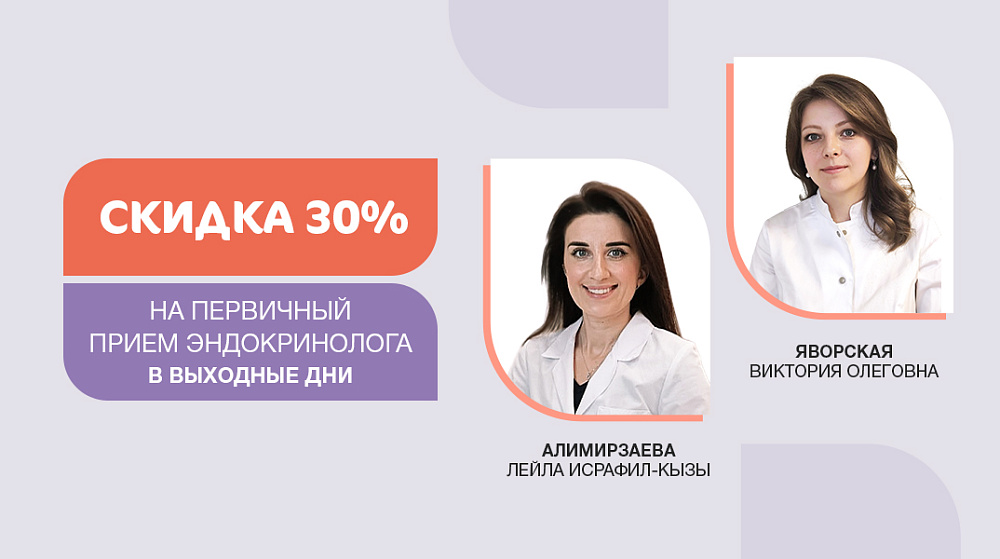 Мы предлагаем консультации профессиональных врачей-эндокринологов в выходные дни со скидкой 30% 3080 руб. вместо 4400 руб.