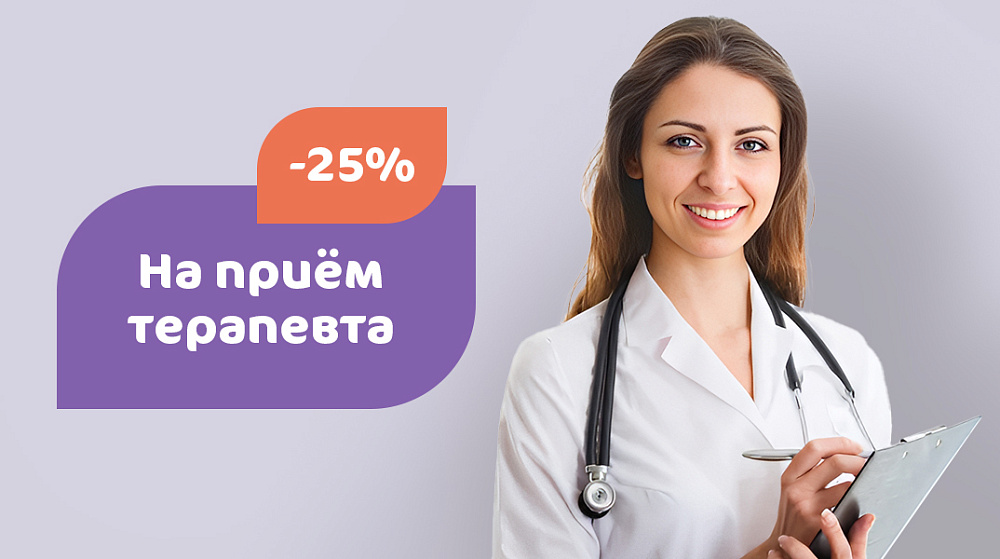 Предлагаем вам воспользоваться специальным предложением — скидкой 25% на приём врача-терапевта!