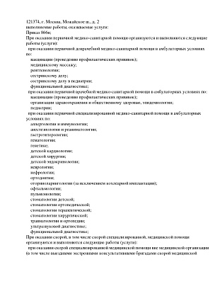 Здесь трудятся врачи более чем 20 специальностей, научные сотрудники ведущих московских клиник и институтов – высококвалифицированные специалисты, знающие и любящие свою работу.