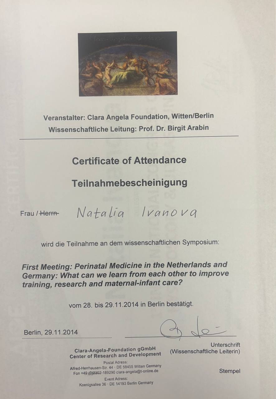 • 2015 - Германия, Берлин повышение квалификации по перинатальной медицине - невынашивание беременности