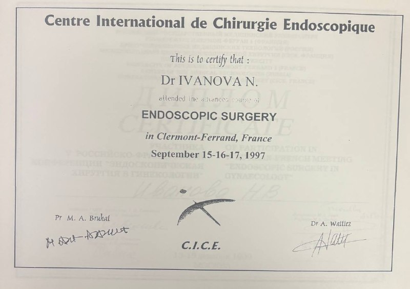 • 2000, 2004 - Франция, Клермон-Ферранд повышение квалификации по лапароскопии