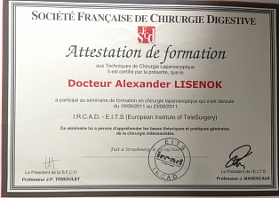 - Клиника Севиль (Иркад), стажировка по «Урологии с курсом лапароскопии», Страсбург, Франция.