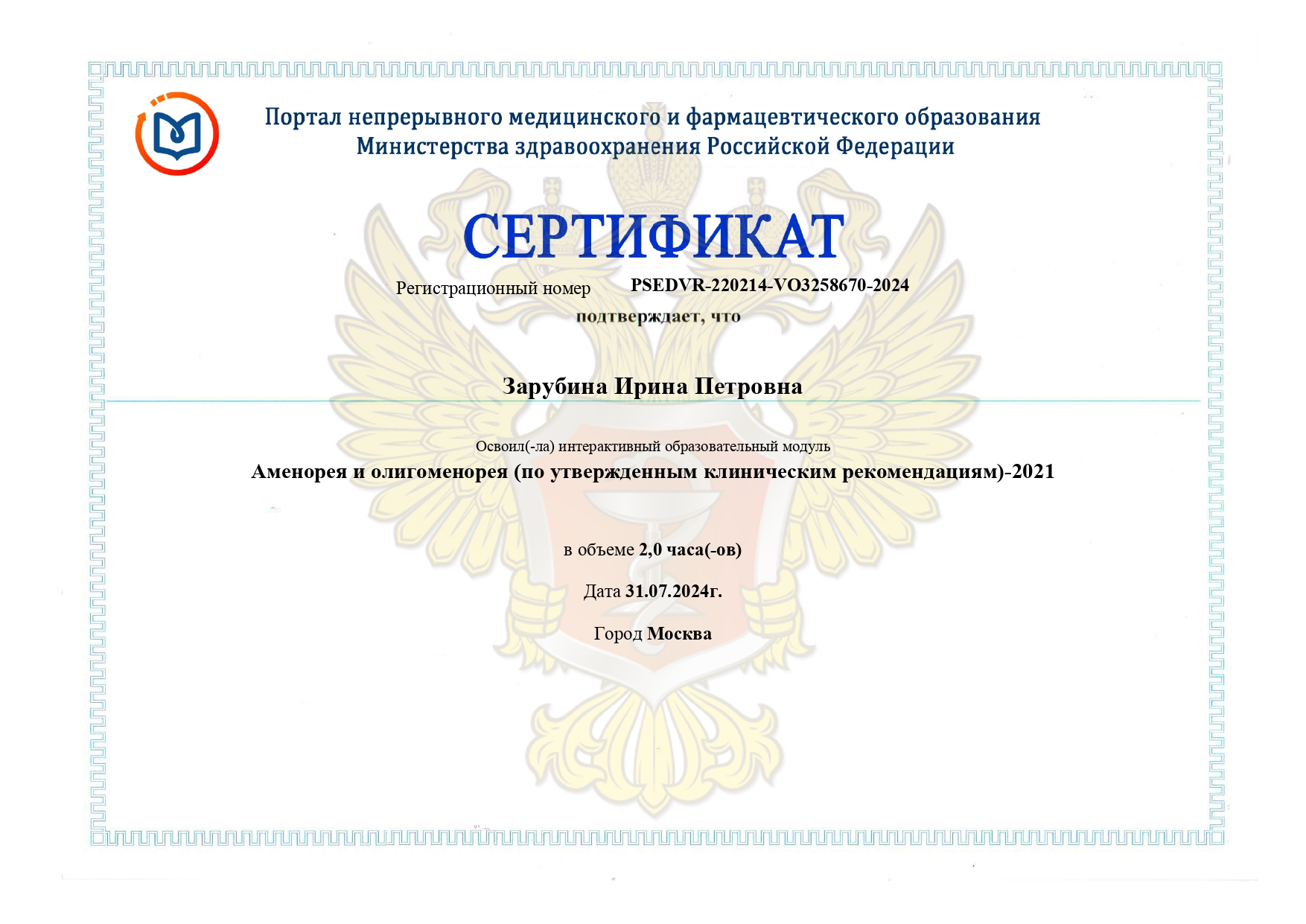 • 2024-2025 гг. - Клиника «Мать и дитя» Домодедово, врач акушер-гинеколог