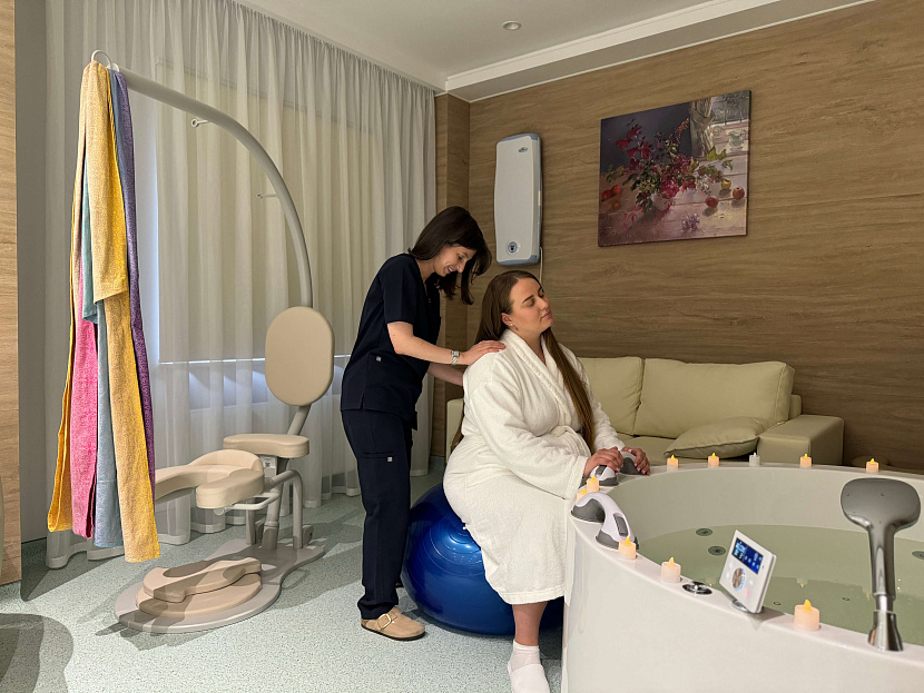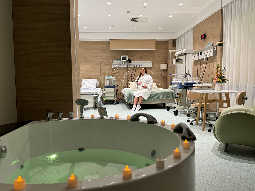 Комфортабельные индивидуальные родильные боксы оборудованы мониторами слежения за состоянием здоровья матери и плода в родах, а также всем необходимым для свободного поведения в родах – просторной душевой кабиной, гидромассажной ванной, фитболами для релаксации.