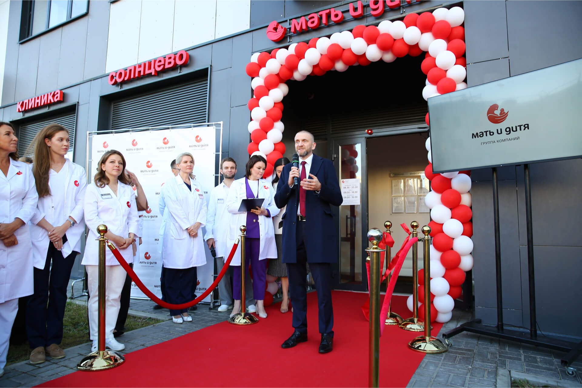 Ленту перерезали генеральный директор группы компаний «Мать и дитя» Марк Аркадьевич Курцер, первый заместитель префекта Западного административного округа Москвы Мария Владимировна Петросян, главный внештатный специалист по акушерству Департамента здравоохранения Москвы Антон Сергеевич Оленев, глава муниципального округа Солнцево Валерий Степанович Верхович, настоятель Храма Сергия Радонежского Александр Волков.