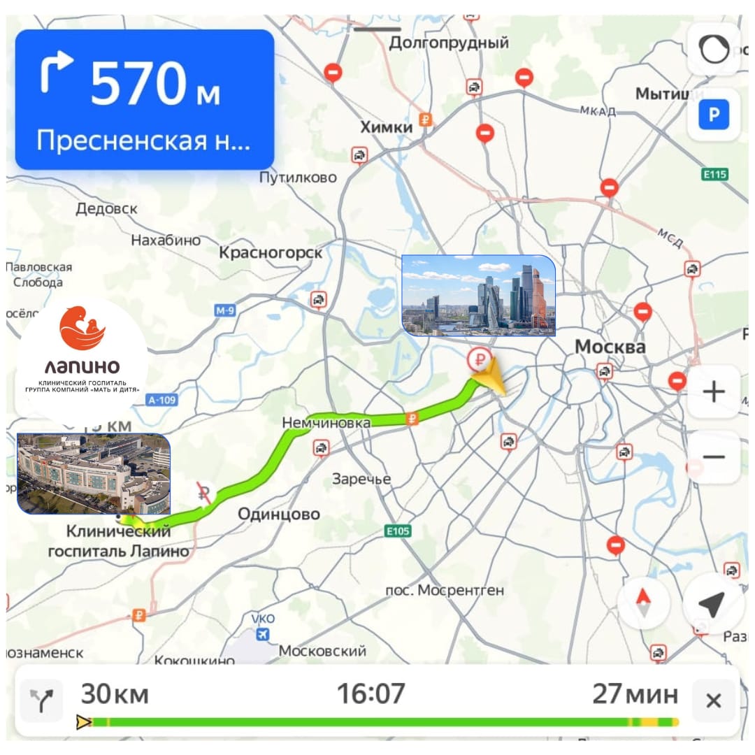 Отличная новость для пациентов Лапино! Теперь дорога до госпиталя из центра Москвы займет в среднем 27 минут!