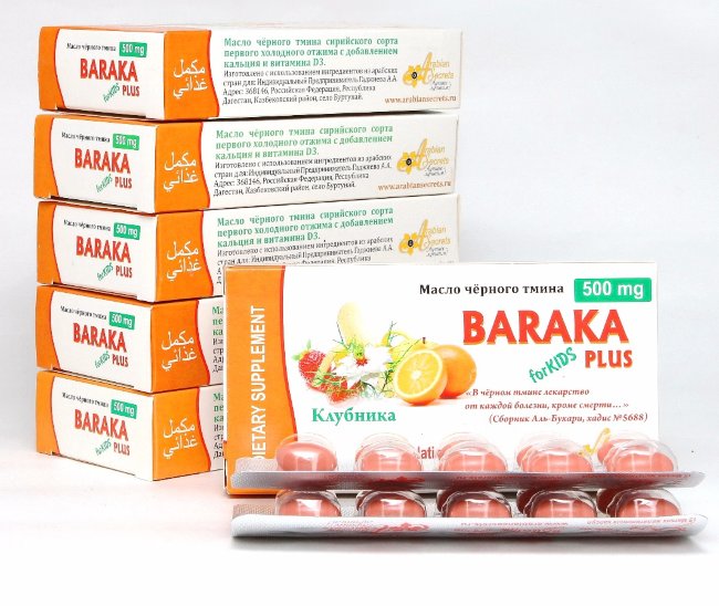 Каждая мягкая жевательная желатиновая капсула со вкусом клубники содержит: 100% масло чёрного тмина сирийского сорта первого холодного отжима с добавлением кальция и витамина D3 500 мг.